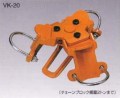 【特徴】●チェーンブロックを掛けられる三脚(三股)を簡単に作れます。●φ70mm~φ90mmの丸木やパイプなどにスパナ一本で簡単に取付け出来ます。●フックは昇降ロープの引く角度により着脱可能なので、三脚(三股)を立ててからチェーンブロックの着脱が可能です。●パイプは広がらない様ロープで脚間をつないで下さい。【用途】●墓石・景石・柱石・水中ポンプ・ヒューム管などの据付作業や果樹の引抜作業など。
